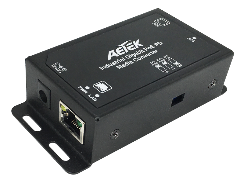 Convertidor Ethernet Gigabit a Fibra optica ( SFP) alimentado con POE / 12 VDC