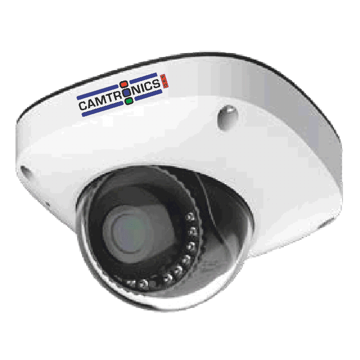 Cámara Domo IP de 5 Megapíxeles de resolución máxima 2.592 x 1.944 a 30 fps CAMTRONICS-PRO. Formato extraplano. Sensor CMOS 1/2,8". Compresión H 265/H264/JPEG. Lente 2,8 mm. LEDS de alta potencia de Iluminación infrarroja. Alcance 10 a 15 metros. Microfono incorporado. Entrada/Salida de alarma. entrada/Salida de Audio. Soporta estándar ONVIF 2.2. IP 66. WDR Real Alimentación 12 V DC / POE. Soporta tarjeta SD hasta 256 Gb. Filtro antoruido. Incluye analiticas de video: cruce de linea, doble linea, merodeo, direccion equivocada, conteo de personas ( con grabadores CPRO). Cumple normativa NDAA.