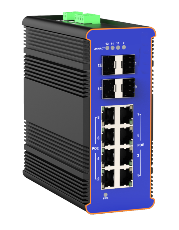 Switch Industrial Profesional POE Gestionable L2+ de 8 puertos +4 SFP. 30W por canal