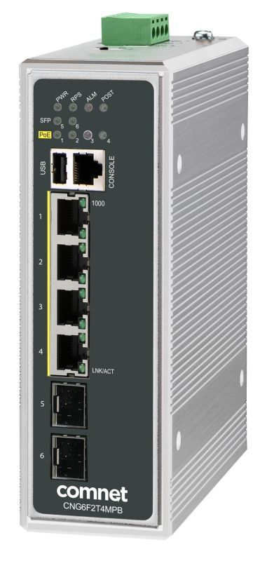 Switch industrial profesional GESTIONABLE con 4 puertos POE BT y 2 SFPS