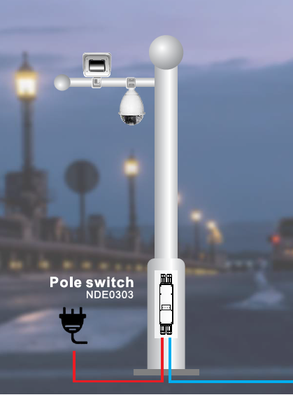 - Switch de exterior para insertar en poste o baculo.